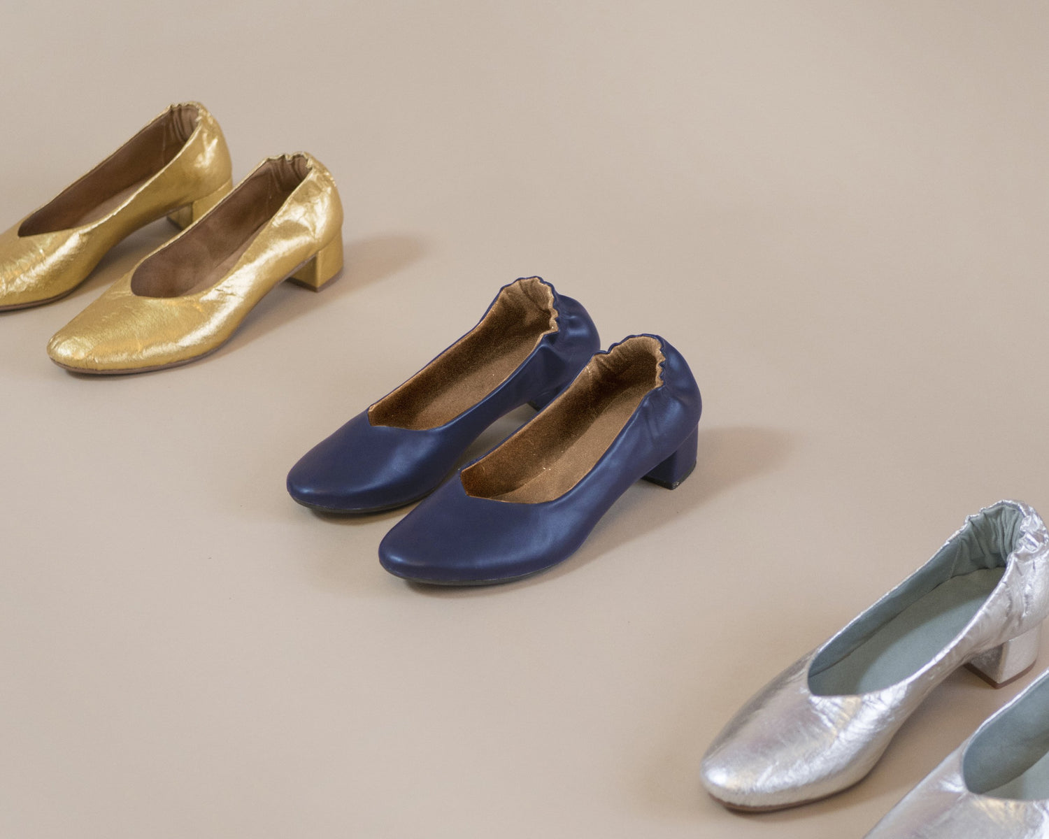 Durable burnished microfiber vegan leather with a super soft ultrasuede lining, and a hidden elastic heel grip, the Holly low-heeled pump is an easy every-day staple to slip on and go about your day. Supportive memory foam footbed, and a slip-resistant rubber sole.